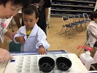 昨年は寸劇に大活躍でしたが、今年は薬局を身近に知ってもらおうということで調剤体験を行いました。